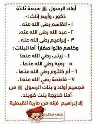 أولاد النبي من الإناث. قائمة بأسماء أولاد النبى صلى الله عليه و سلم رزق الحبيب صلى الله عليه و سلم بثلاثة ابناء من الزكور و هم. وبعد ذكر أولاد الرسول صلى الله عليه وسلم الذكور سيأتي ذكر بناته فله صل ى الله عليه وسل م أربعة بنات من زوجته خديجة رضي الله عنها فلم ي نجب أحد من زوجاته إناثا غيرها وأم ا بناته صل ى الله عليه وسل م ما يأتي.