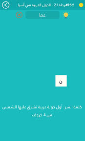 كلمة السر هي اول دولة عربية تشرق عليها الشمس من 4 حروف مرحلة 21 الدول العربية في اسيا.