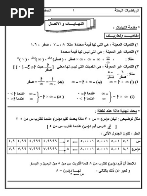 Pdf Functions Limits And Continuity الدوال النهايات والاتصال