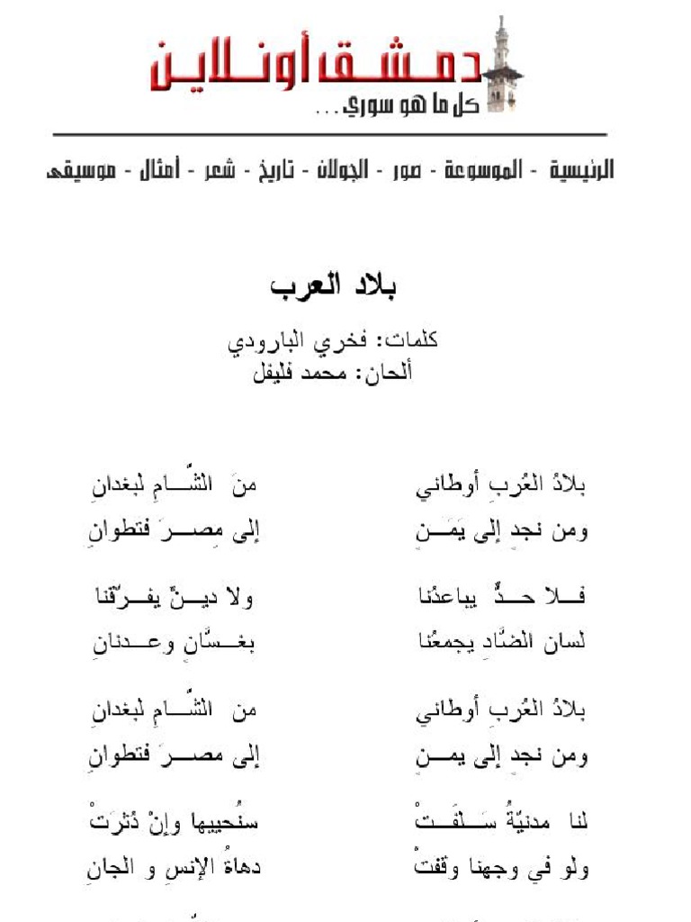 الأغاني والقصائد Songs And Poems بلاد العرب أوطاني