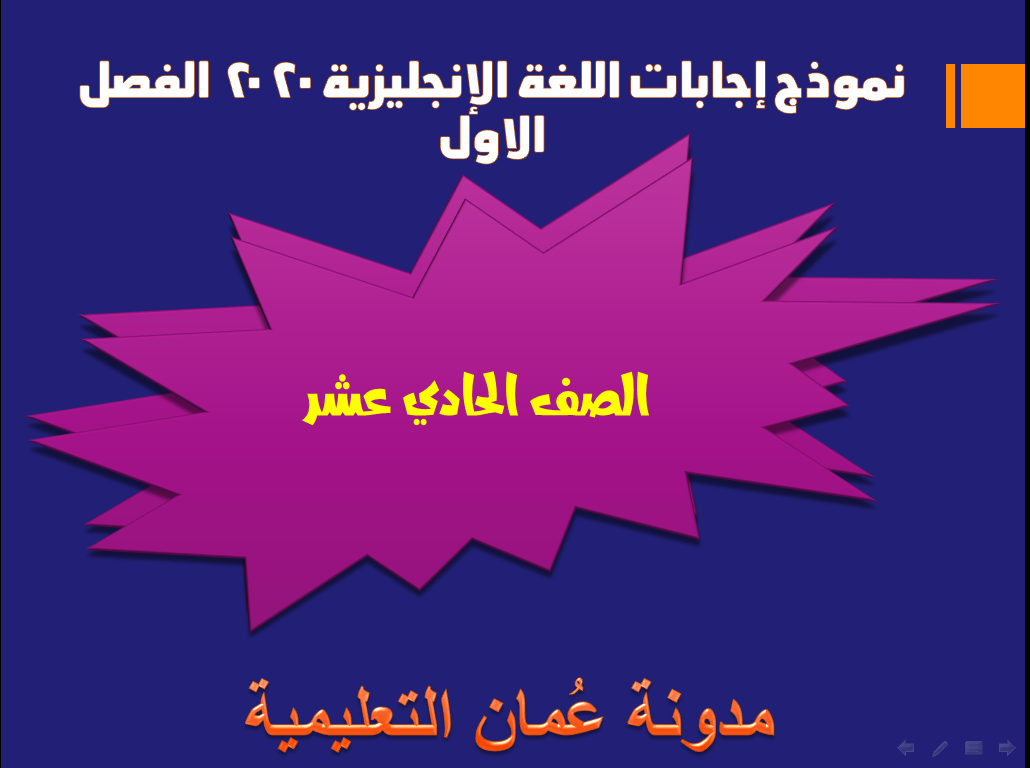 اللغة الإنجليزية 2020 إختبار الصف الحادي عشر نهاية الفصل الأول نموذج الإجابة