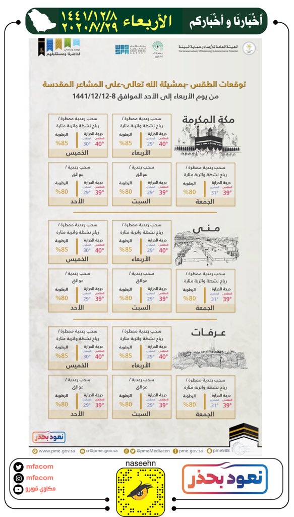 أخبارنا و أخباركم On Twitter الأرصاد توقعات الطقس بمشيئة الله تعالى على المشاعر المقدسة من يوم الأربعاء وحتى يوم الأحد