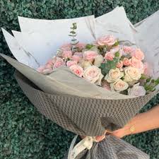 باقة ورد بتغليف رمادي أنيق شوق فلورز