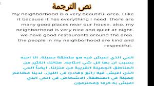 تعبير عن الحي الذي اعيش فيه بالانجليزي قصير مترجم Youtube