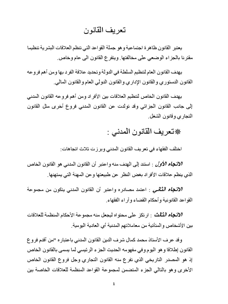 تعريف القانون المدني موضوع