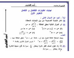 إجابات اختبارات كتاب المدرسة تفاضل وتكامل للصف الثالث الثانوي للأستاذ أحمد الشنتورى