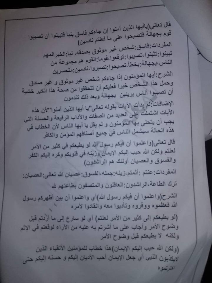 بالصور شرح وتحليل آيات من سورة الحجرات الدرس الأول لمادة اللغة العربية للصف التاسع الفصل الأول منتديات صقر الجنوب