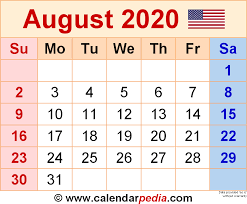 August 2020 Calendar Templates For Word Excel And Pdf