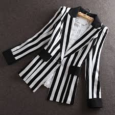 عالية الجودة 2017 الخريف جديد جديد الكورية ضئيلة صغيرة دعوى سترة المرأة أبيض وأسود مخطط السترة Feminino Suit Jacket Women السترة Femininoبدلة الصغيرة سترة Aliexpress