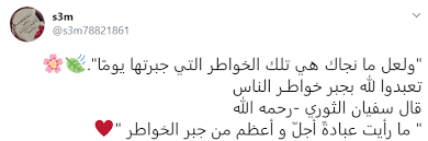 أمنيات مهاجره En Twitter قال سفيان الثوري ما رأيت عبادة أجل وأعظم من جبر الخواطر اميطوا الأذى عن الخواطر قد ما تقدرون