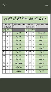 جدول تنظيم حفظ القرآن كيفية عمل جدول لحفظ القران جدول حفظ القران الكريم للاطفال