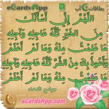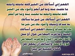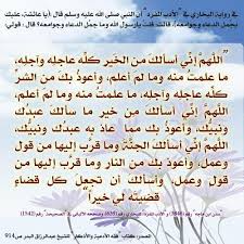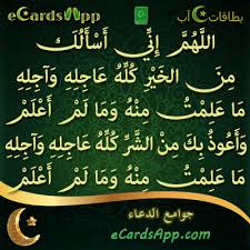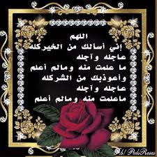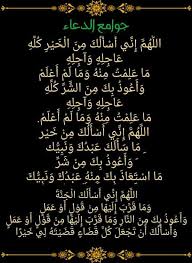 من دعاء الرسول صلى الله عليه وسلم اللهم إني أسألك من الخير كله عاجله و آجله ما علمت منه وما لم أعلم وأعوذ بك من الشر كله عاجله و آجله Me