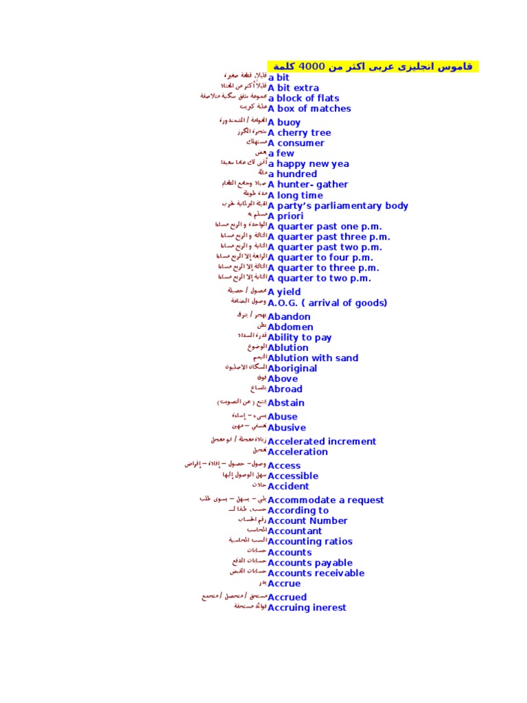 أشهر 1000 كلمة تستخدم في اللغة الانجليزيه مترجمة بمثابة قاموس Bookpdf1