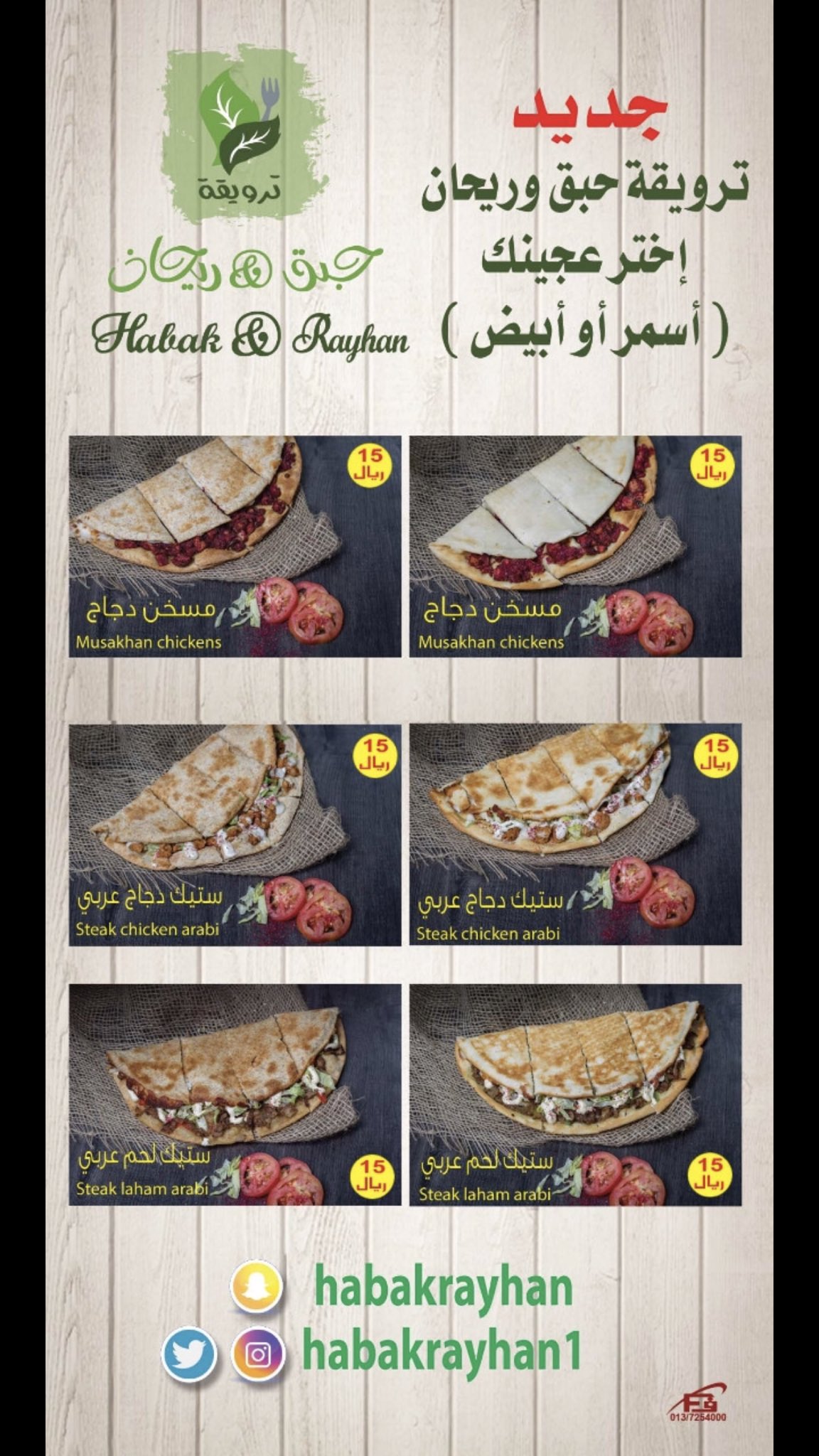 منيو مطعم حبق وريحان حفر الباطن
